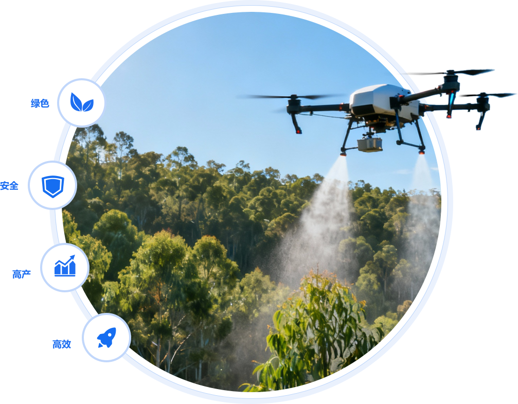 力源宝充分利用无人机“飞防”作业,精准施药(或增施叶面肥),实施绿 色防控专业化服务,较传统人工喷施技术更加高效、安全、节约、环保,让农林生产管理尽显“科技范儿”,既有效提高了病虫防治效率,降低农药使用量和防治成本,又解决了人工施药或地面机械施药受地形限制等问题,为高产高效目标的实现奠定坚实基础。