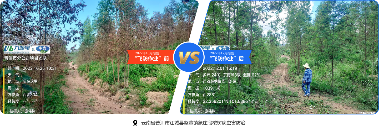 目前,力源宝“飞防”专业团队已服务面积超过十万亩,取得显著效果,均得到了客户的高度认可,结合“有机+精准定制”施肥解决方案实施,防治结合(“治标治本”),为农林业高产高效高质量绿色发展提供可靠保障
